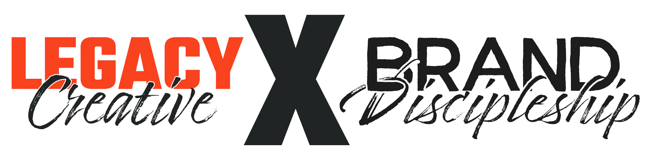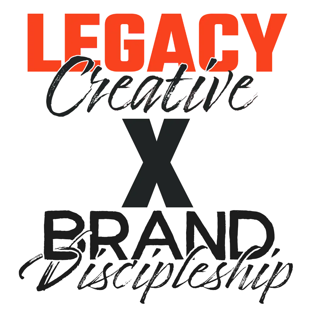 Logo for Legacy Creative with the words 'Legacy' in red, 'Creative' in black, and 'Brand' and 'Discipleship' in black, separated by a large gray 'X'.